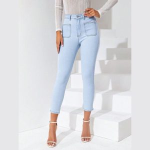 Women’s High Waisted Stretchy Skinny Jeans | Ladies Skinny Fit Stretch Comfortable and Stylish Jeans | Patched pocket skinny jeans